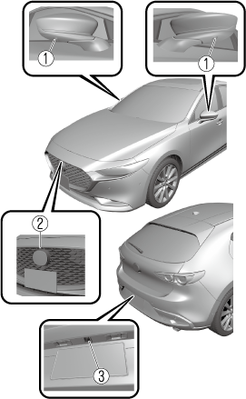 Votre véhicule est équipé d’une caméra avant, de caméras latérales et d'une caméra arrière. Le moniteur de vue à 360° utilise chaque caméra.