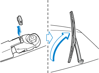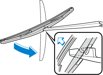 3. Tourner fermement le balai d'essuie-glace vers la droite jusqu'à ce qu'il se déverrouille, puis retirer le balai.