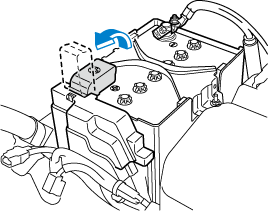 Emplacement indiqué sur l'illustration (ne pas connecter à la borne négative (-) de la batterie)