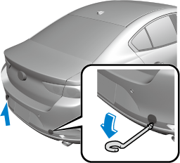 Retirer l'anneau de d'immobilisation et la clé à écrou de roue du compartiment à bagages (Rechercher).