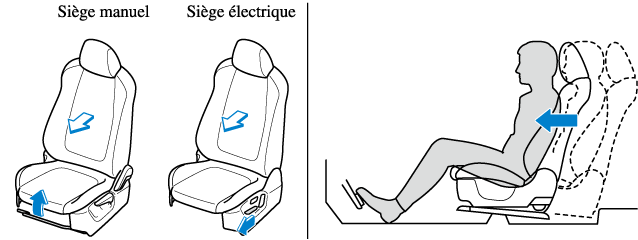 Dans le cas du siège manuel, élever la hauteur d'assise déplace le siège vers l'avant. Régler à nouveau le siège en avant ou en arrière.
