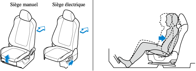 Les réglages de la position de conduite recommandés par Mazda sont effectués selon les procédures suivantes.