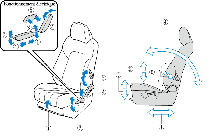 Réglage de la hauteur de l'avant du coussin de siège (Siège électrique) (Certains Modèles)