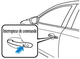 Toutes les portières peuvent être verrouillées/déverrouillées en appuyant l'interrupteur de commande sur les portières avant lorsque le conducteur est muni de la clé.
