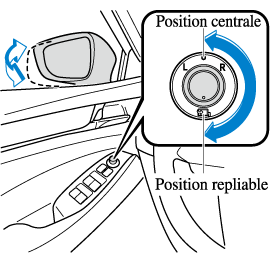 Pour rabattre le rétroviseur, tourner l'interrupteur de rétroviseur extérieur.