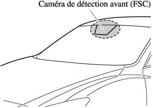 La caméra de détection avant (FSC) est installée sur le pare-brise. Consulter un concessionnaire agréé Mazda pour la réparation et le remplacement de pare-brise.