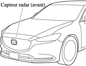 Pour les réparations, les remplacements ou les travaux de peinture autour du capteur radar (avant), consulter un concessionnaire agréé Mazda.