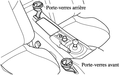 Placer des objets autres que des bouteilles en plastique, des verres ou des canettes de boissons dans le porte-verres est dangereux. En cas de freinage ou de manœuvre brusque, les occupants peuvent être cognés et subir des blessures, ou les objets peuvent être projetés à l'intérieur du véhicule et gêner le conducteur, ce qui peut causer un accident. N'utiliser le porte-verres que pour y mettre des bouteilles en plastique, des verres ou des canettes de boissons.