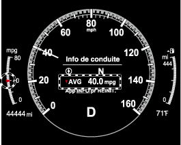 La consommation moyenne de carburant est également indiquée par une flèche rouge sur l'affichage de consommation instantanée de carburant.