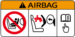 Les véhicules équipés d'un coussin d'air côté passager avant porte l'étiquette d'avertissement suivante. L'étiquette avertit contre l'utilisation de dispositifs de sécurité pour enfants faisant face vers l'arrière sur le siège avant en tout temps.