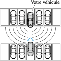 La zone de détection du capteur radar (arrière) est obstruée par un mur voisin ou un véhicule en stationnement. (Faire marche arrière avec le véhicule jusqu'à une position où la zone de détection du capteur radar n'est plus obstruée.)