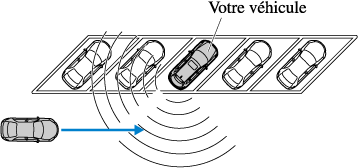 Le système RCTA détecte les véhicules qui s'approchent par les côtés arrière gauche et droit ou par l’arrière du véhicule lorsque le véhicule fait marche arrière à partir d'un espace de stationnement, et avertit le conducteur de danger possible en utilisant les voyants de surveillance des angles morts (BSM) et l'avertisseur sonore.