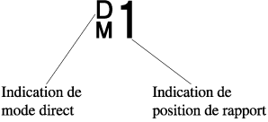 Tandis qu'en mode direct, les indications D et M s'allument et la position de la vitesse utilisée est indiquée.