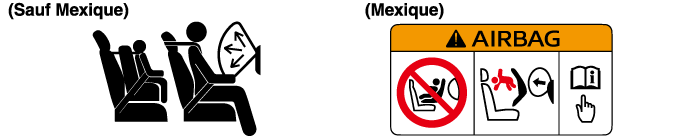 Le fait d'asseoir un enfant de 12 ans ou moins sur le siège avant est dangereux. L'enfant peut être frappé par le coussin d'air s'il se déploie et subir de graves blessures ou même la mort. Un enfant endormi est susceptible de s'appuyer contre la portière et d'être cogné par le coussin d'air latéral en cas de collision modérée du côté passager avant du véhicule. Autant que possible, toujours attacher un enfant de 12 ans ou moins sur le siège arrière, à l'aide d'un système de dispositif de sécurité pour enfants approprié suivant l'âge et la taille de l'enfant.