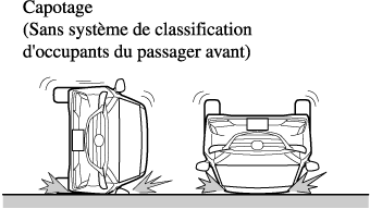 L'illustration suivante est un exemple d'un accident qui ne pas être détecté comme un capotage. Par conséquent, il est possible que les dispositifs de prétension de ceinture de sécurité et rideaux de sécurité avant ne se déploient pas.