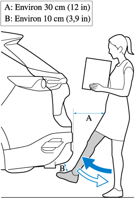 Effectuer le mouvement de coup de pied avec le pied lorsque toutes les conditions suivantes sont remplies et que le véhicule est à l'arrêt.
