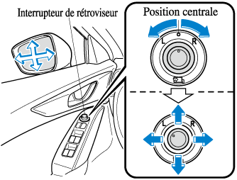 2. Appuyer sur l'interrupteur de rétroviseur pour faire le réglage désiré.