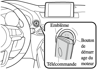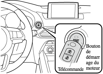 En cas d'anomalie avec la fonction du bouton de démarrage du moteur, le témoin du bouton de démarrage du moteur (ambre) clignote. Dans ce cas, il est possible que le moteur démarre, mais le faire inspecter dès que possible par un concessionnaire agréé Mazda.