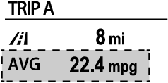 La consommation moyenne de carburant est calculée toutes les minutes à partir de la distance totale parcourue sur le compteur journalier et la consommation totale de carburant, et l'économie moyenne de carburant est affichée soit pour le TRIP A, soit pour le TRIP B.