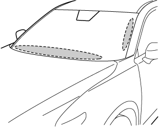 Les filaments thermiques aux endroits suivants chauffent et facilitent l'élimination de la neige accumulée sur le pare-brise.