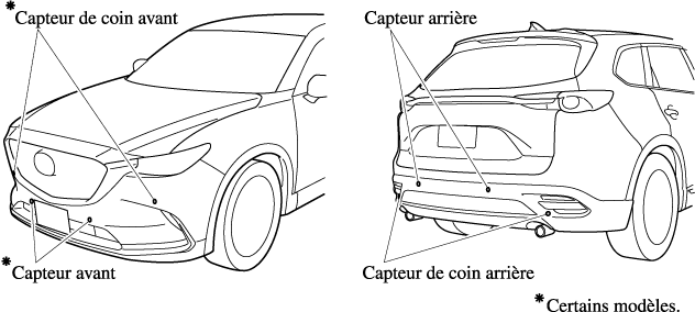 En cas de choc au niveau des pare-chocs, même suite à un accident mineur, faire toujours inspecter le système par un concessionnaire agréé Mazda. Si les capteurs sont faussés, ils ne peuvent détecter les obstacles.