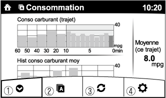 Les informations relatives à la consommation de carburant s'affichent en actionnant chaque icône dans l'affichage.
