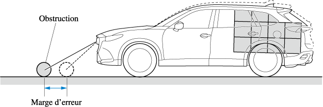 Il peut y avoir une certaine marge d'erreur entre la surface de la route apparaissant à l'écran et la surface réelle de la route. Une marge d'erreur dans la distance perçue pourrait conduire à un accident, soyez donc conscient des conditions suivantes qui peuvent plus facilement produire des erreurs dans la distance perçue.