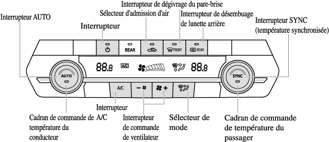 L'information du système de commande de température apparaît sur l'affichage.