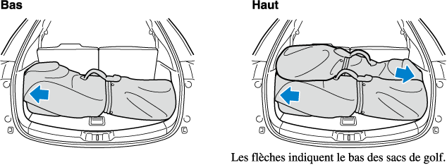 (Les méthodes suivantes peuvent ne pas permettre de placer certains sacs de golf trop grands.)