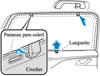 Tenir la languette, tirer le pare-soleil vers le haut et accrocher les encoches.