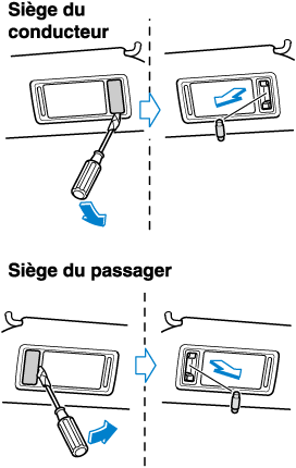 Insérer le tournevis à tête plate dans l'écart entre la lentille et son unité et ensuite glisser le tournevis pour détacher la lentille.
