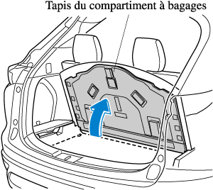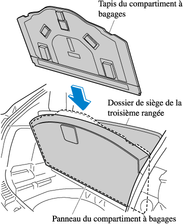Ranger le tapis du compartiment à bagages entre les dossiers des sièges de la troisième rangée et le panneau du compartiment à bagages.