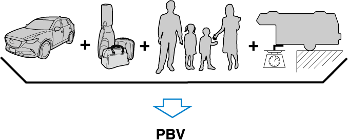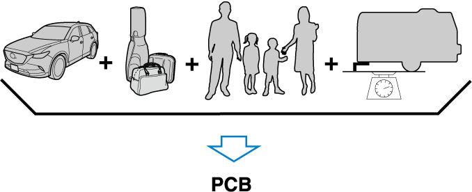 PCB (poids combiné brut) est le poids du véhicule chargé (PBV) plus le poids de la remorque complètement chargée.