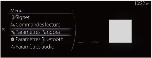 Sélectionner le menu et modifier les réglages de Pandora®.