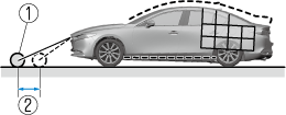 Il peut y avoir une certaine marge d'erreur entre la surface de la route apparaissant à l'écran et la surface réelle de la route. Une marge d'erreur dans la distance perçue pourrait conduire à un accident, soyez donc conscient des conditions suivantes qui peuvent plus facilement produire des erreurs dans la distance perçue.