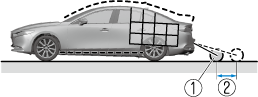 Étant donné que les lignes de guidage d’extrémité avant du véhicule ou les lignes de guidage de distance (caméra arrière) sont affichées sur la base d'une surface plane, la distance à l'objet en trois dimensions affichée sur l'écran est différente de la distance réelle.