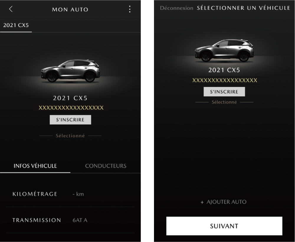- Sur l'écran de menu : [MY MAZDA] [Mon véhicule] ⇒ S'INSCRIRE .