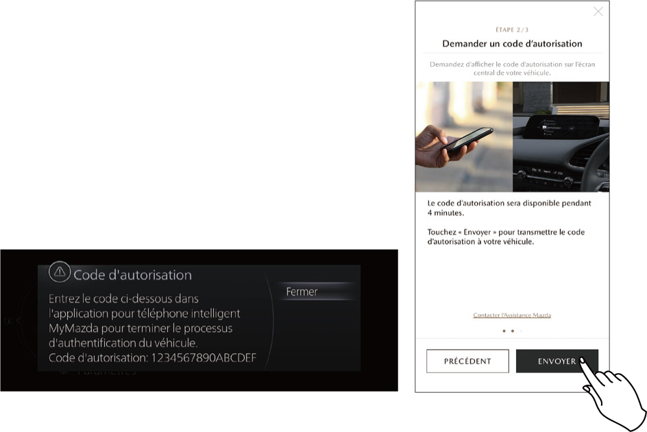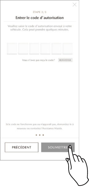 Appuyez sur ENVOYER pour afficher le Code d’autorisation à 6 chiffres sur l'affichage central du véhicule.