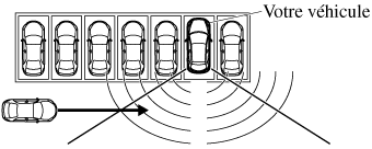 La zone de détection du capteur radar (arrière) est obstruée par un mur voisin ou un véhicule en stationnement. (Faire marche arrière avec le véhicule jusqu'à une position où la zone de détection du capteur radar n'est plus obstruée.)
