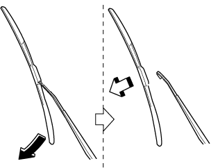 Ouvrir la pince et faire glisser l'ensemble de balai dans le sens de la flèche.