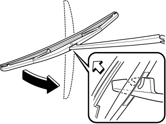 Tourner fermement le balai d'essuie-glace vers la droite jusqu'à ce qu'il se déverrouille, puis retirer le balai.