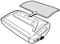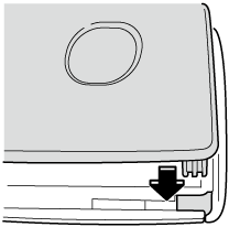 Retirez le couvercle inférieur tout en faisant glisser le bouton dans le sens de la flèche.