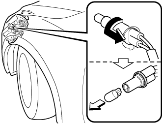 Tourner l'ensemble douille et ampoule dans le sens contraire des aiguilles d'une montre et le retirer.
