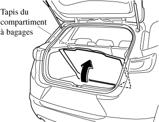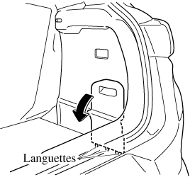 Tirer un peu le panneau du compartiment à bagages et insérer le bord opposé dans les supports de façon à ce que le panneau du compartiment à bagages soit soutenu.