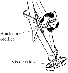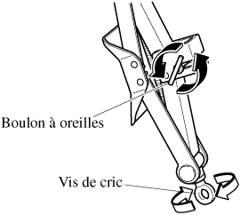 Tourner le boulon à oreilles et la vis du cric dans le sens contraire des aiguilles d'une montre.