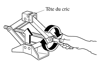 Tourner la vis du cric dans le sens indiqué sur la figure et ajuster la tête du cric pour soit proche de la position de levage.
