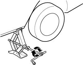 Tourner la manivelle du cric dans le sens des aiguilles d'une montre pour soulever le véhicule juste assez pour que la roue de secours puisse être installée. Avant de retirer les écrous de roue s'assurer que le véhicule est bien stable et ne risque pas de glisser ou de se déplacer.