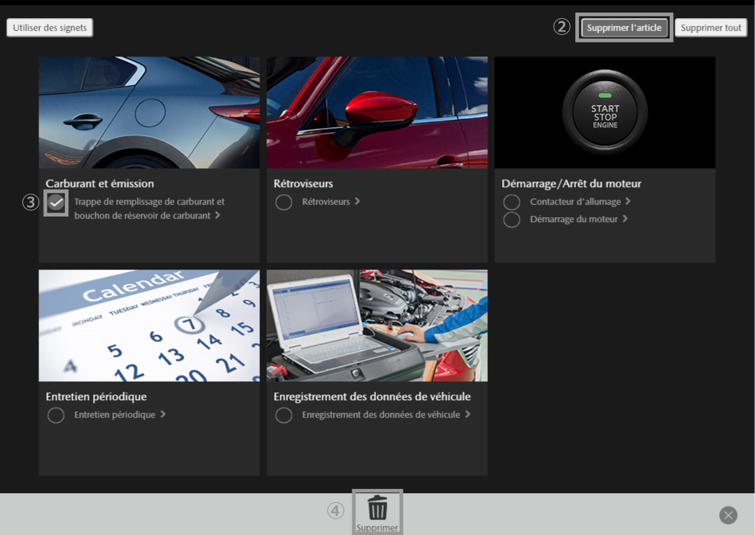 【Lors de la sélection et de la suppression d'éléments】