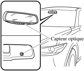 Le rétroviseur à anti-éblouissement automatique réduit automatiquement l'éblouissement causé par les phares des véhicules roulant derrière lorsque le contacteur est mis sur ON.