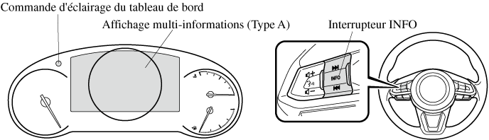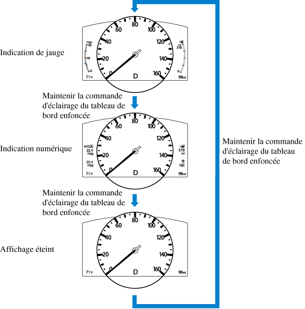 Le contenu de l'écran change chaque fois que la commande d'éclairage du tableau de bord est maintenu enfoncée.